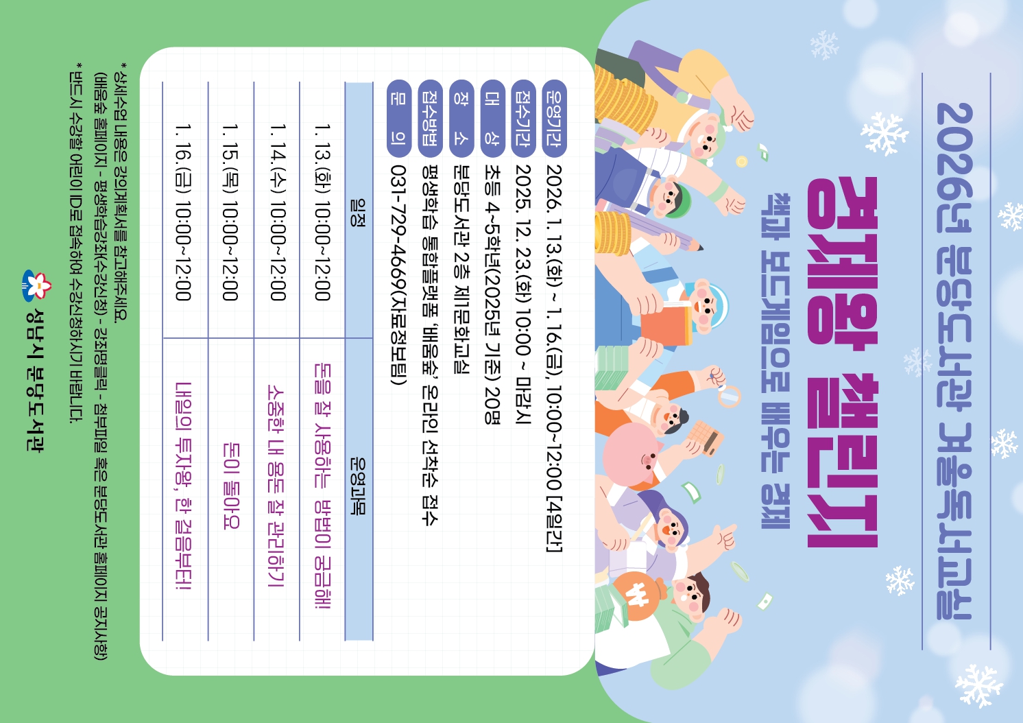 | 제목 | 2026년 분당도서관 겨울독서교실 수강생 모집 | ||||||||||||||||||||