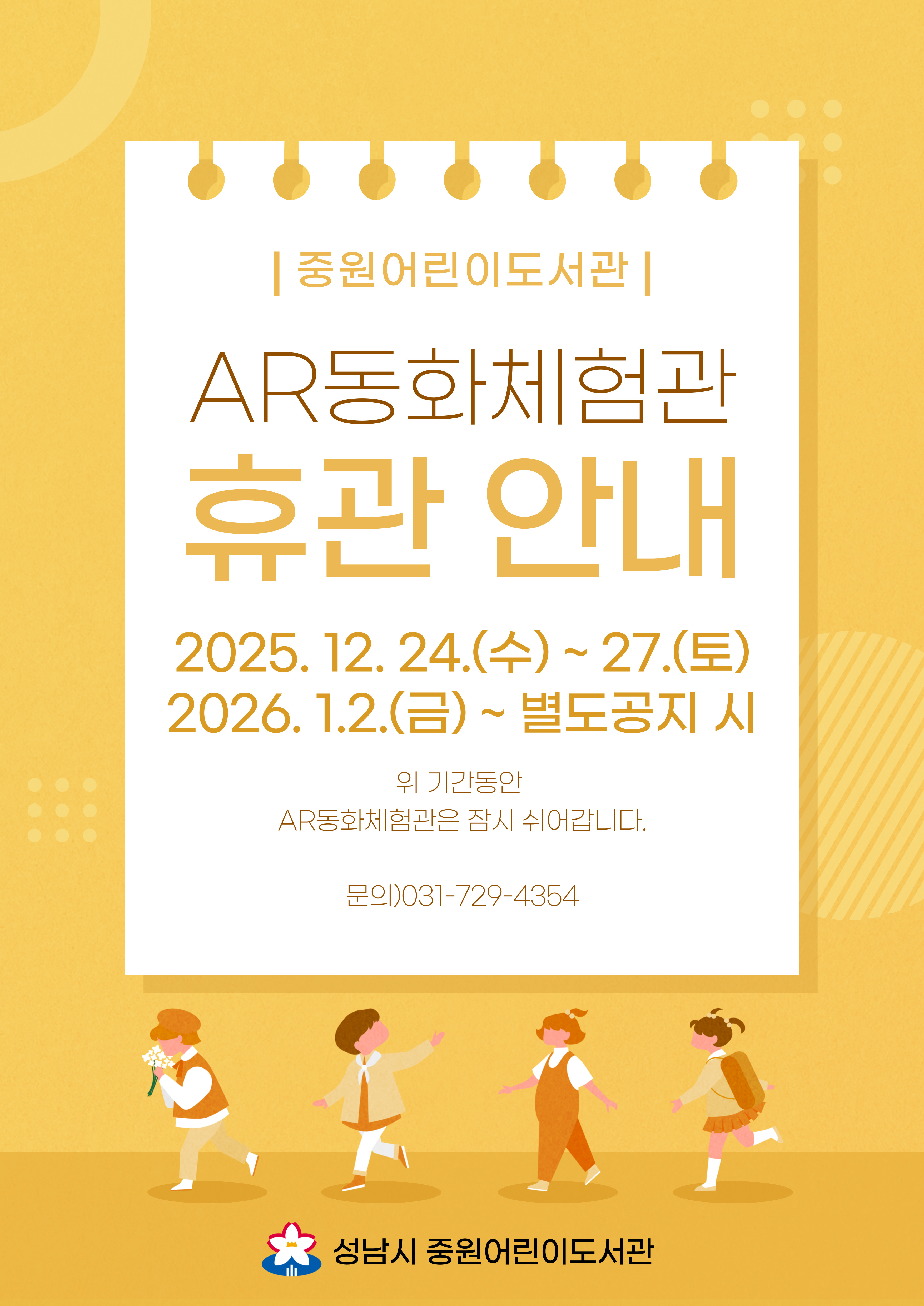 중원어린이도서관 AR동화체험관 임시휴관 안내