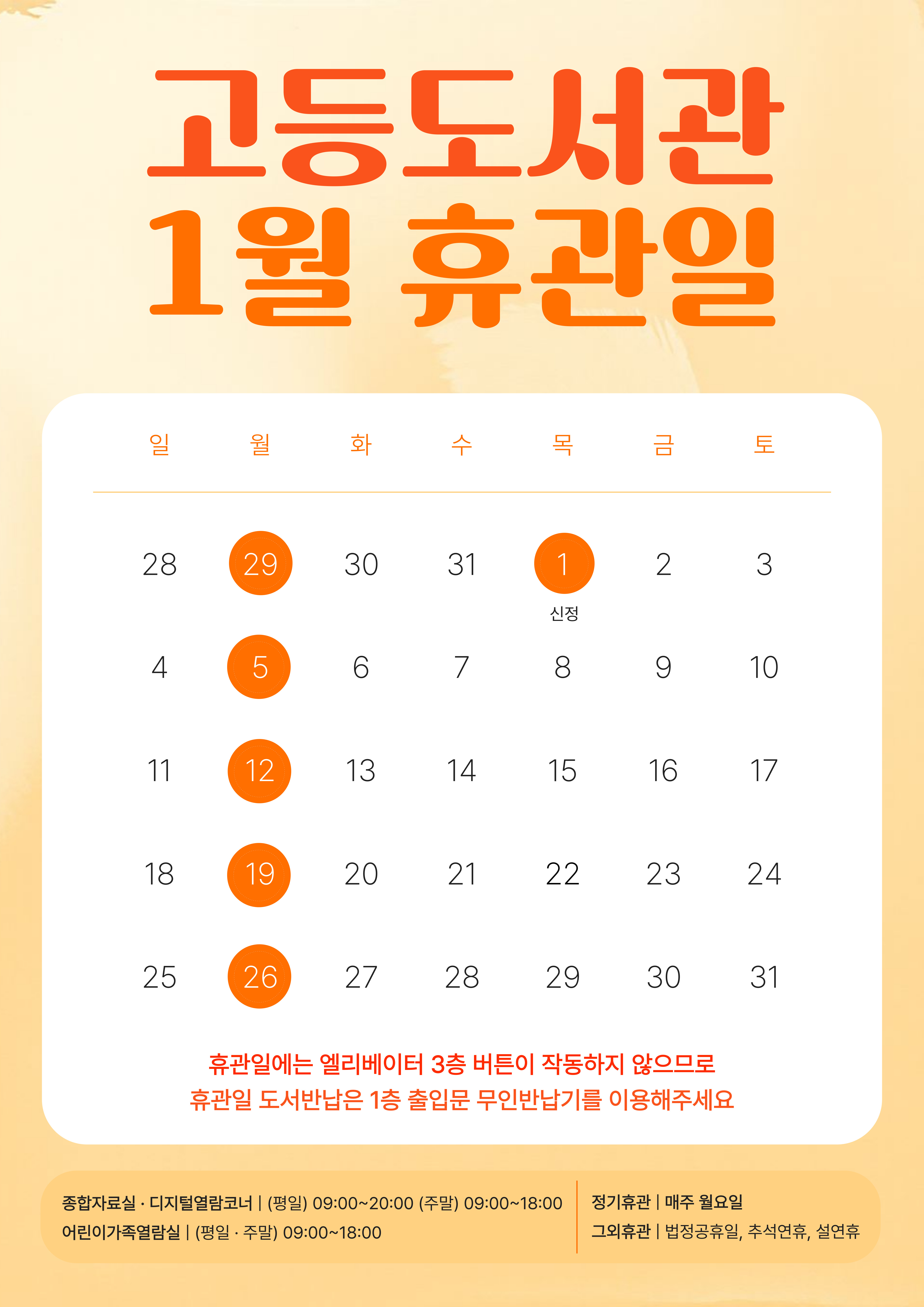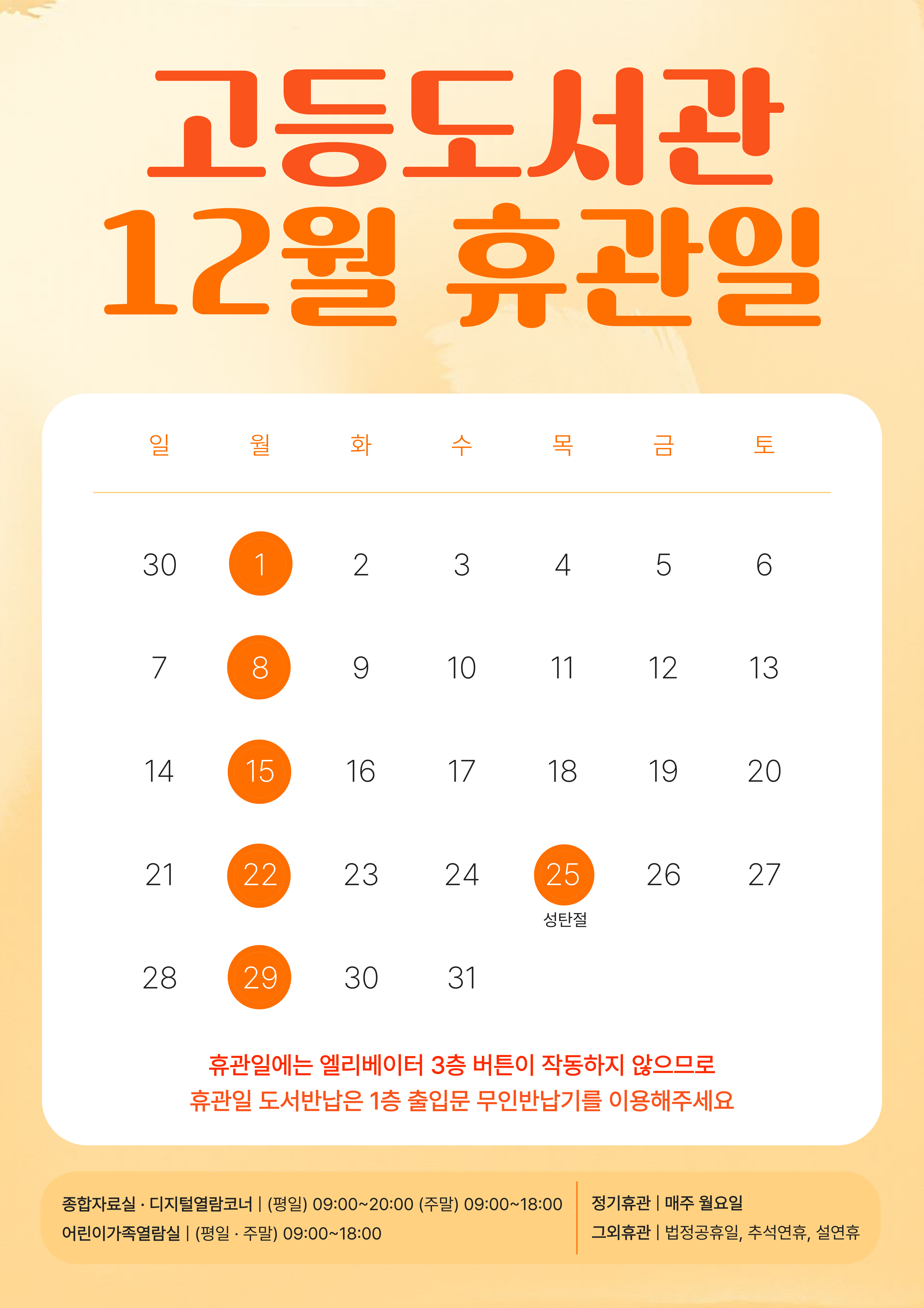 | 제목 | 고등도서관 2025년 12월 ~ 2026년 1월 휴관일 안내 |