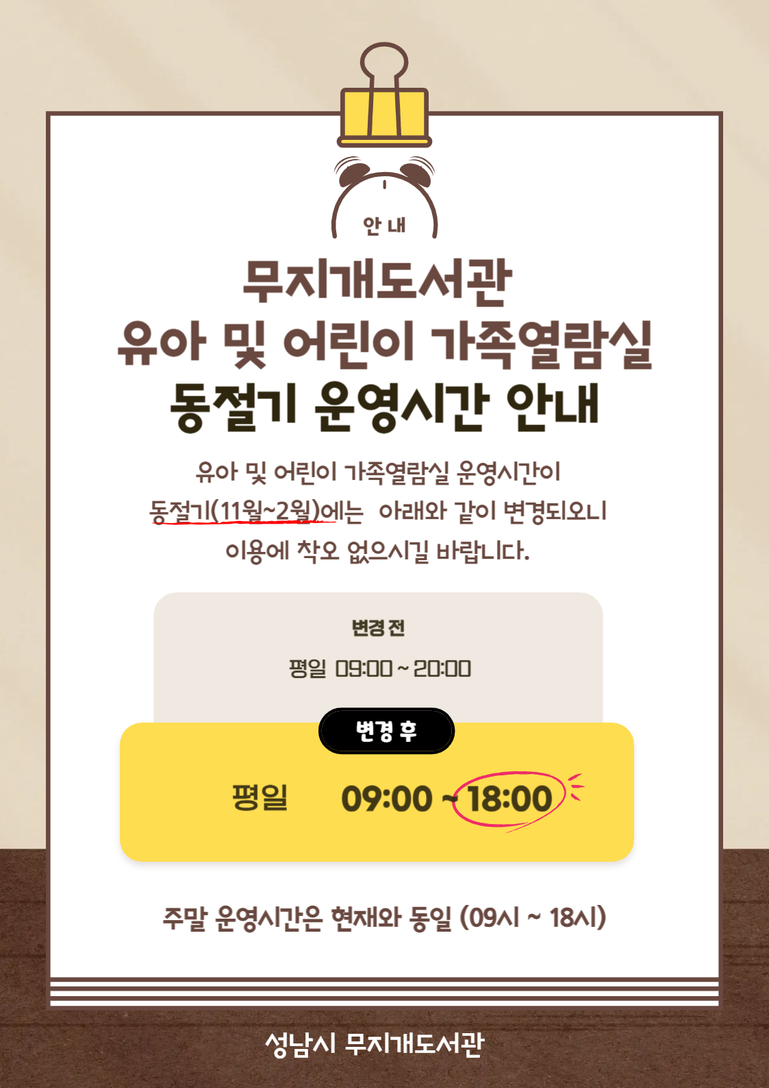 (열람실 운영시간은 기존과 동일 09:00-22:00)