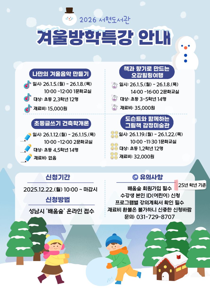 2026년 겨울방학특강 운영 안내