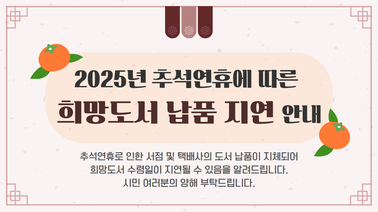 《 2025년 성남시 추석연휴에 따른 희망도서 납품 지연 안내 》