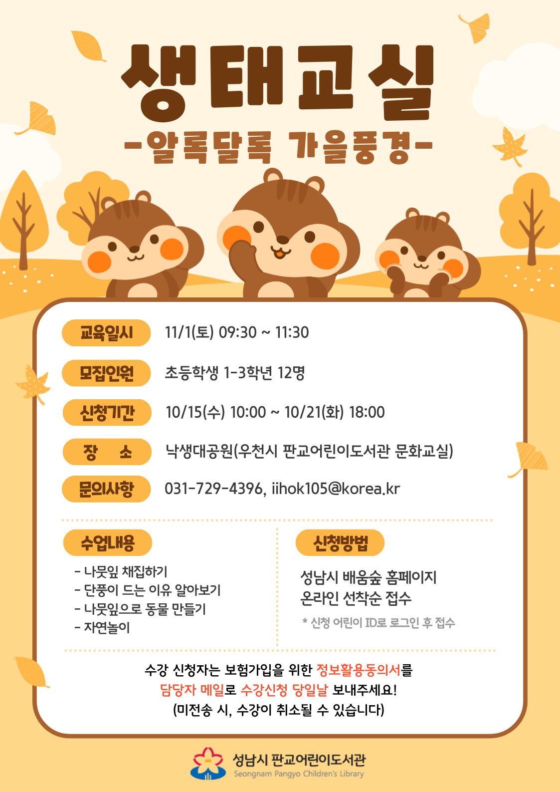 제목 | 판교어린이도서관 2025년 가을Ⅱ 생태교실 수강생 모집 |