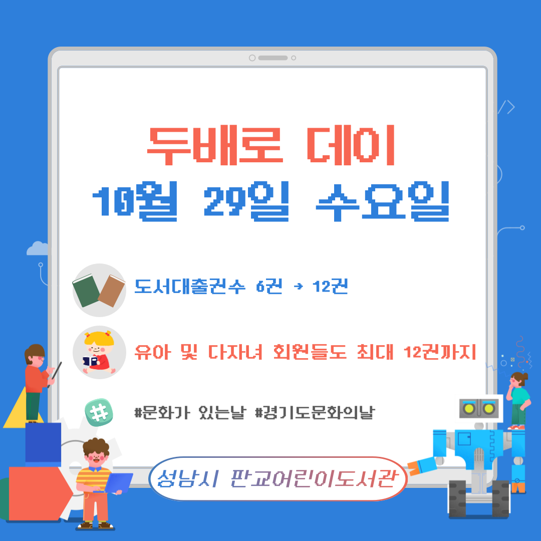 제목 | 판교어린이도서관 2025년 10월 <문화가 있는 날, 경기도 문화의 날> 안내_두배로 데이 |