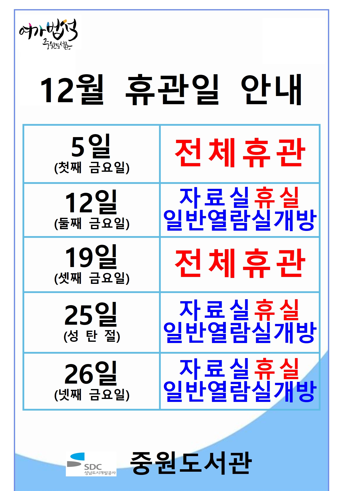 12월 휴관일 안내문