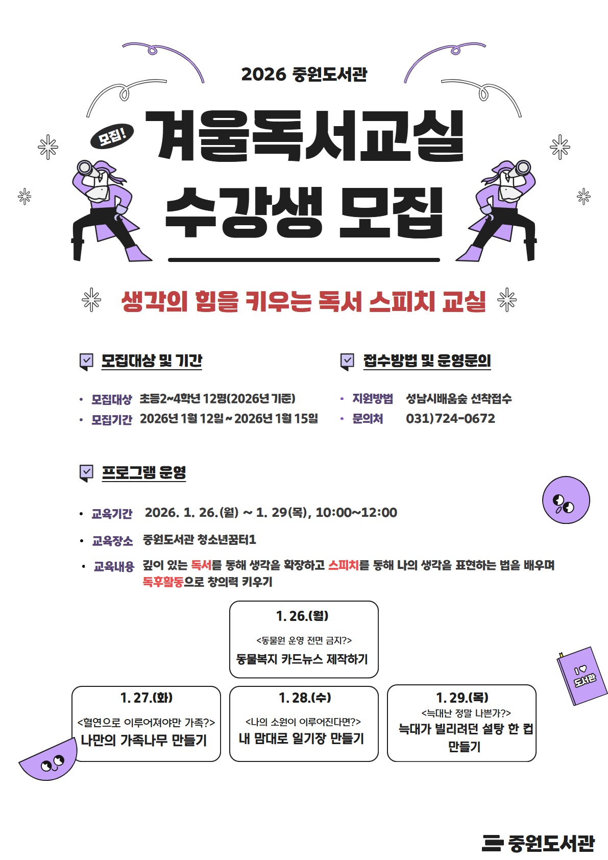 - 운영기간: 2026. 1. 26.(월) ~ 1. 29.(목), 10:00~12:00