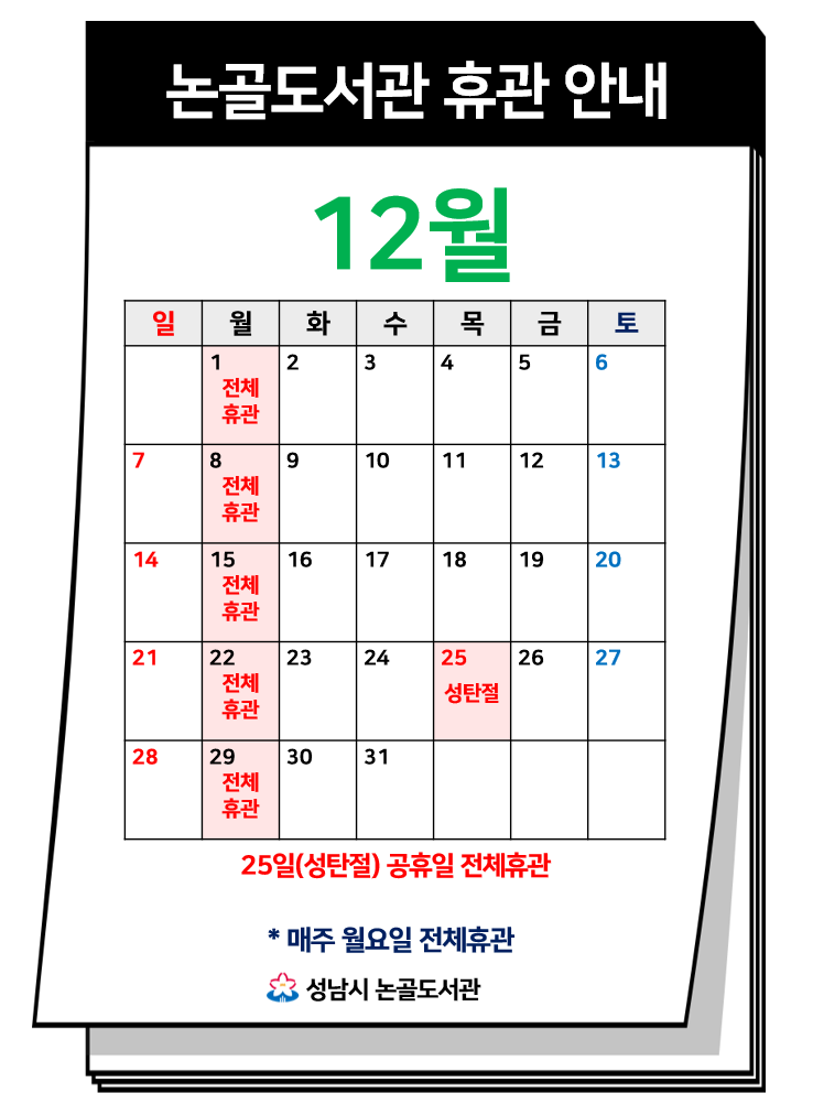 2025년 12월 논골도서관 [문화가 있는 날][경기도 문화의 날] 안내 (두배로 데이)