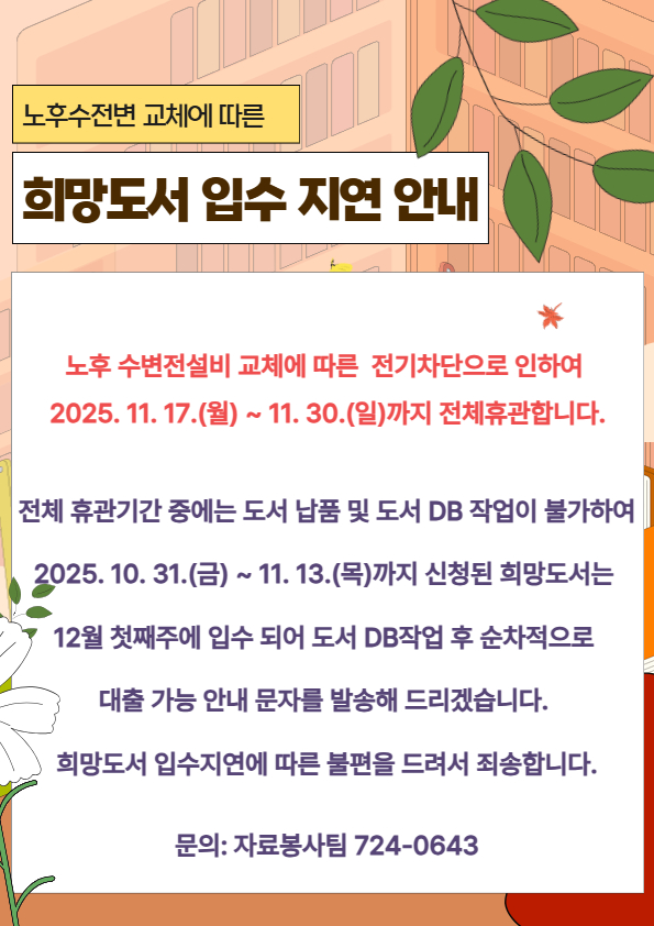 2025년 11월 휴관일 안내문 및 10월 시설보수 실적